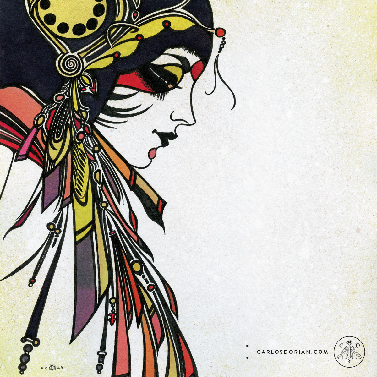 “Bijin I” Ink Drawing & Watercolor