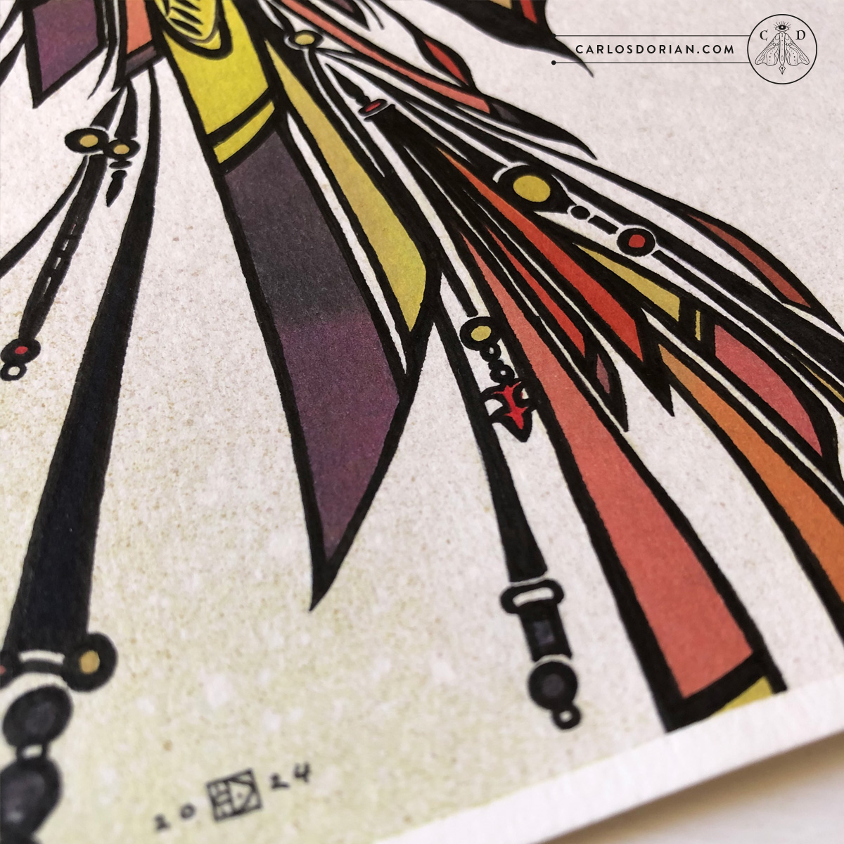 Medium: Black Ink & Watercolor on paper.