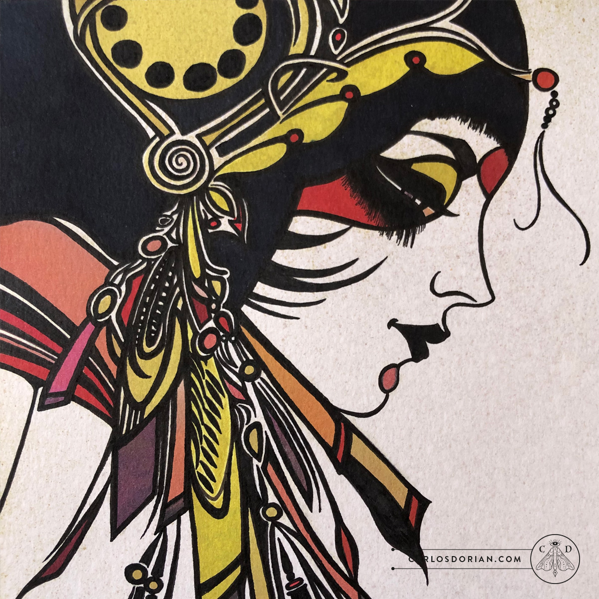 “Bijin I” Ink Drawing & Watercolor.