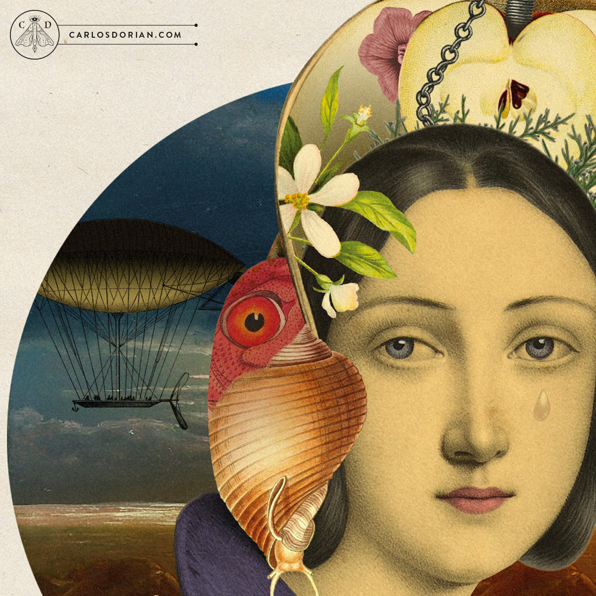 “Désamour” Limited edition Giclée Art Print from this Digital Collage. In my Collages I explore universal concepts of esoterism, mysticism, religion, love, pain, life, death… in colorful, surreal, floral and futuristic retro compositions.