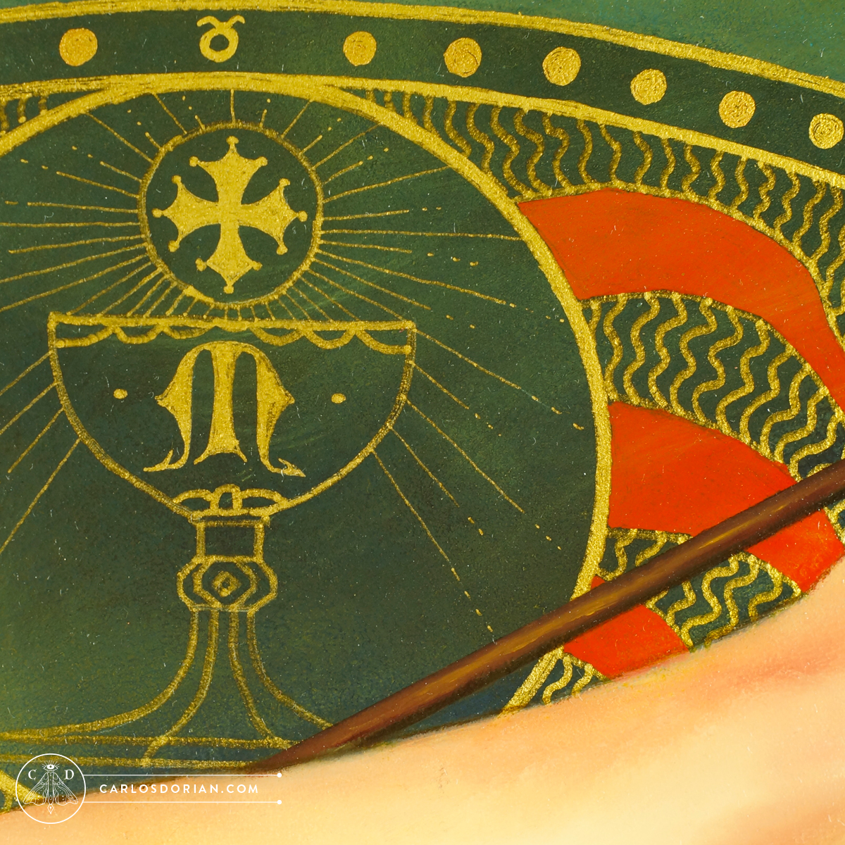 Features: Holy Grail, Swan and circle painted in gold paint. Halo made in gold foil and aged. Finished with protective gloss varnish. Comes with a Certificate of Authenticity and signed by the artist