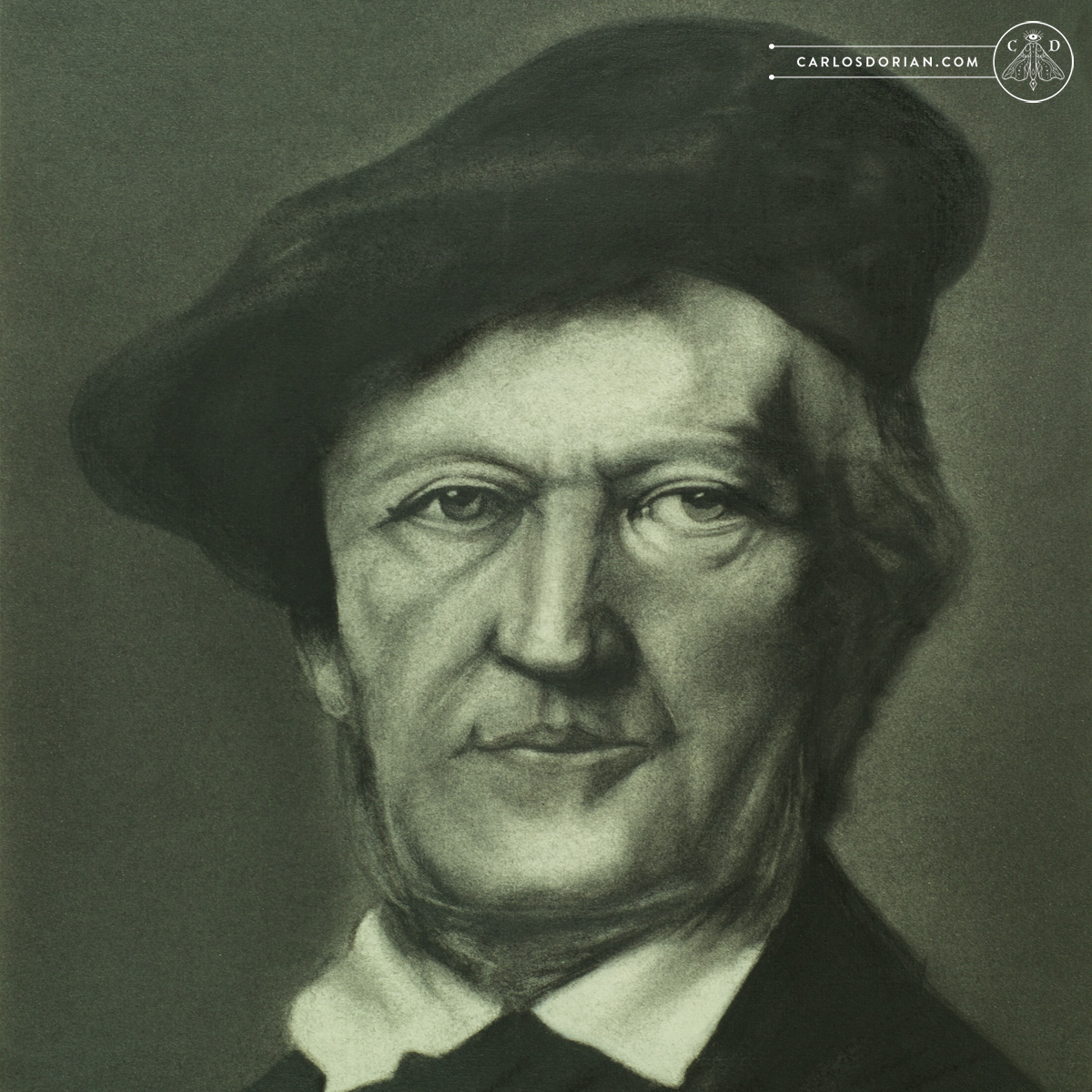 Richard Wagner charcoal portrait, inspired by a painting by Franz von Lembach from 1874.