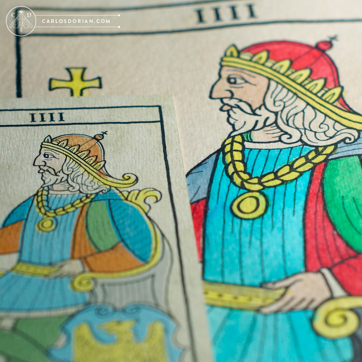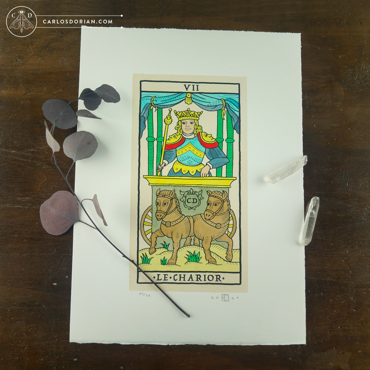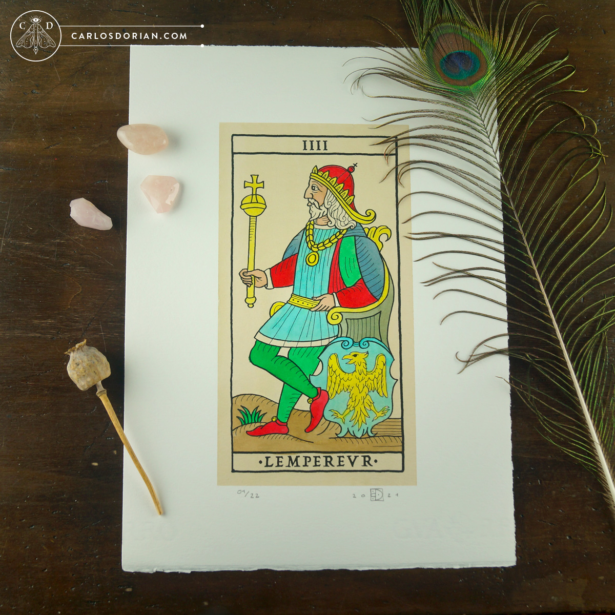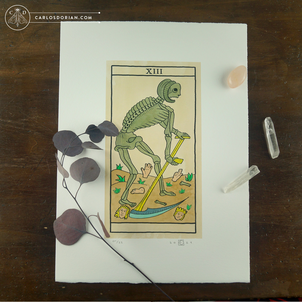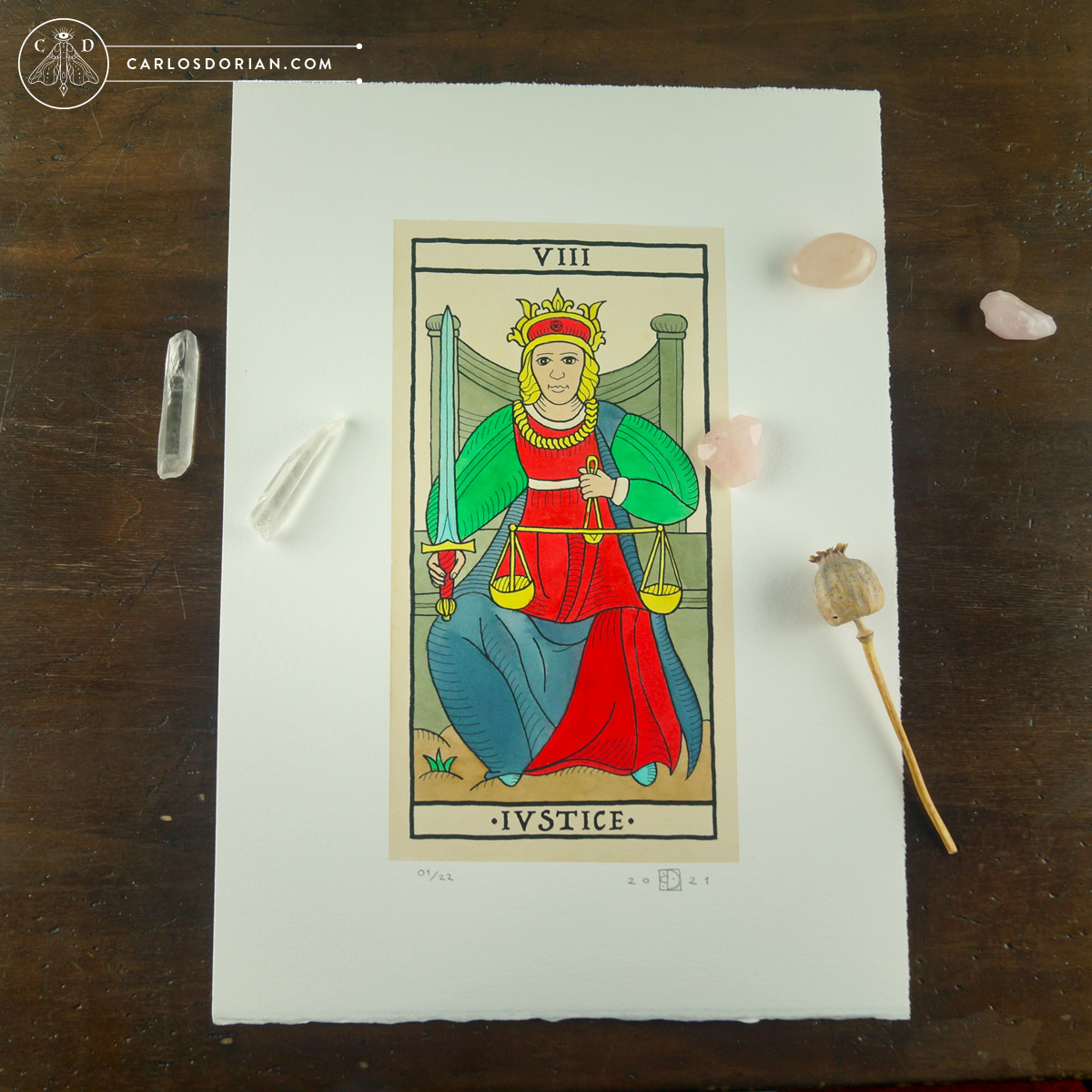 Drawings of the Major Arcana that make up the “Ludus Triumphorum” deck. These Tarot Watercolor sheets are printed in black ink on high quality cotton paper and hand colored one by one.